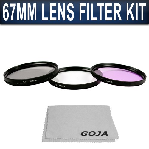 3 Pcs 67MM Filter Kit for Nikon D90 18-105mm VR DX Lens (UV CPL FLD) NEW!!! + 1 Microfiber Cleaning Cloth GOJA Logo Overview
